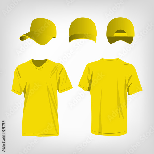 Professional work wear and uniform set, vector isolated illustration. Realistic protective coverall with reflective stripes, t-shirt, boots, safety goggles and yellow helmet.