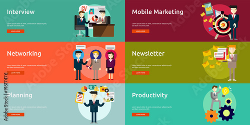 Vector set of horizontal banners with Consultant, Call center and Manager line art flat style design elements, web templates.