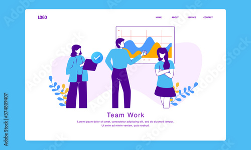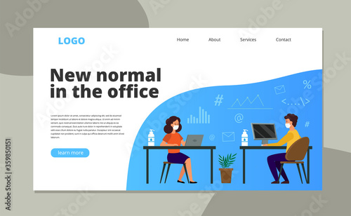 Workspace vector website template, web page and landing page design for website and mobile site development. Software developers workstation concept with characters working and taking rest.