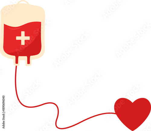 World Blood Donor Day vector poster template. Paper cut red blood bag with medical cross connected to heart. Blood donation.