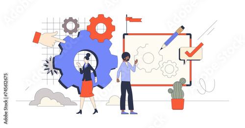 World news, vector concept flat illustration. People creating news reports and reading or watching the latest and live breaking world news online.