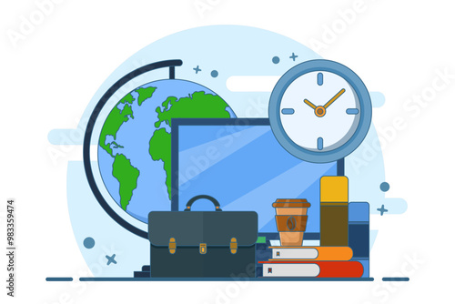 Travel and vacation background banner vector 3d design with airplane, mobile tablet navigation map, passport and tourist suitcase. Holiday trip advertising illustration. Tourism concept