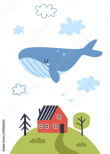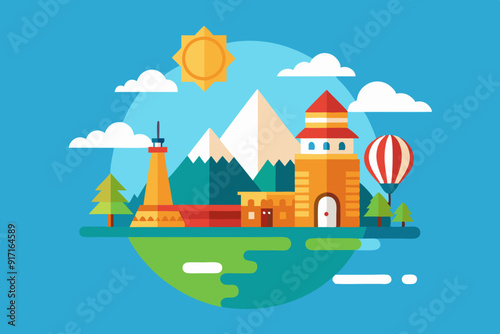 Worldwide delivery concept vector illustration. Globe with map marker and drone with parcel. Flat style design element for website template, poster, banner etc.
