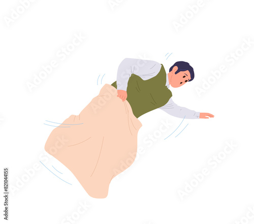 Worried poor bald man looking in empty wallet portrait isolated on white background. Financial problems and crisis, unemployment, poverty and bankruptcy vector illustration