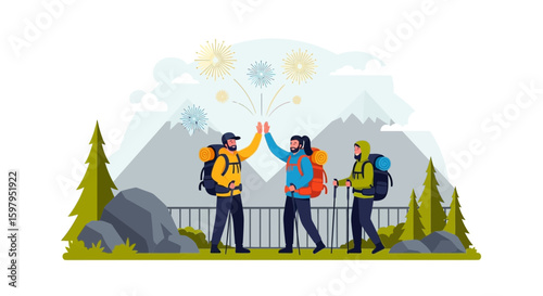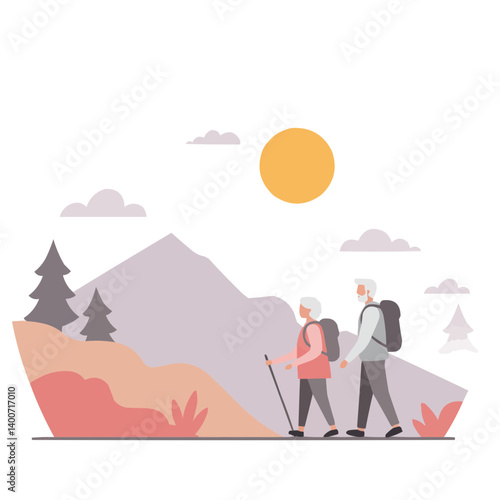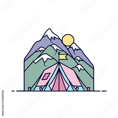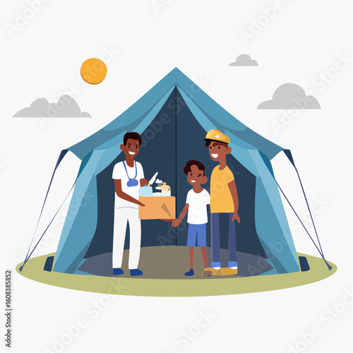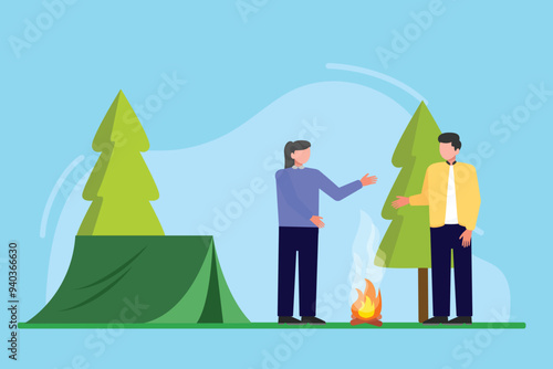 Vector illustration of Chukchi couple, nomadic northern indigenous people of Russia and yaranga, their traditional home. Flat style design element.