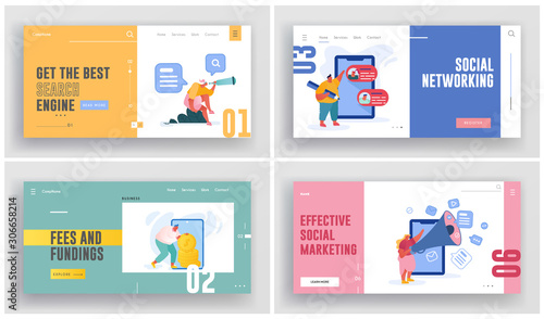 Yard sale vector web banner template set. People sellers and buyers cartoon characters selling and choosing clothes and other used goods. Garage, tag or moving sale concept.