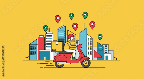 Young girl riding on kick scooter in helmet in the city. Sports equipment. Active lifestyle. flat design
