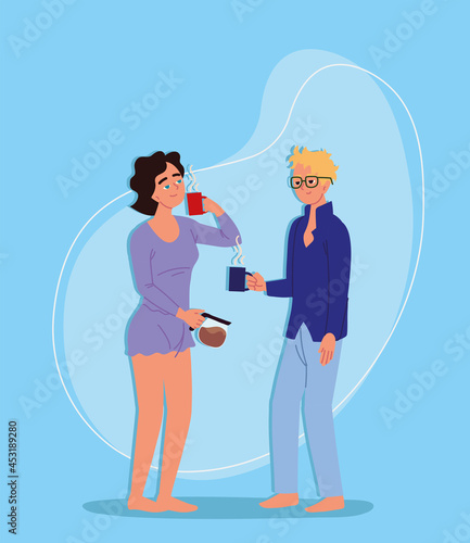 Young man and woman talking together vector. Diverse friends standing enjoy positive communication nice dialogue. Two people character meeting and speaking illustration