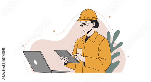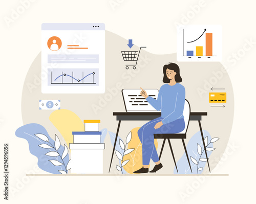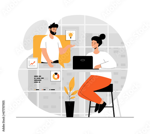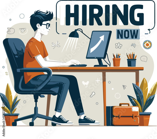 Young man, freelancer working on laptop computer from home in comfortable living room sitting on chair, flat vector illustration. Freelance, remote work, home office workspace.
