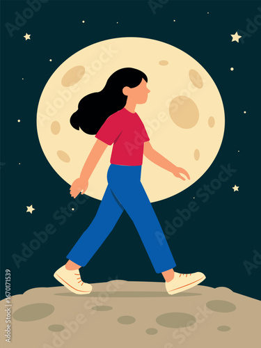 Young man in VR headset flying in outer space, flat vector illustration. Space VR game, simulation, education. Virtual reality technology and entertainment.