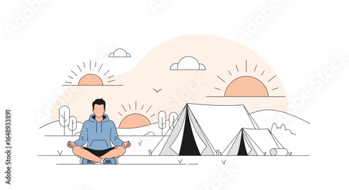 Young man in vr glasses rafting on virtual inflatable boat while sitting in armchair at home, flat vector isolated illustration. Virtual reality technologies.