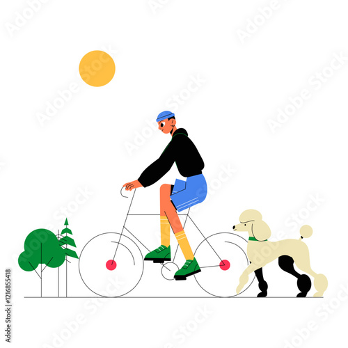 People riding scooter flat vector illustration. Young man and woman couple using eco-friendly transport. Happy active guy and girl enjoy summer fun time leisure activity