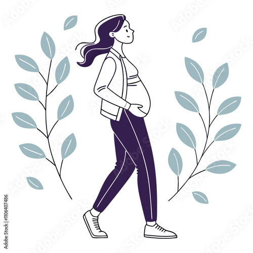 Young pretty girl listening to music enjoying beauty of nature vector illustration isolated on white background. Inspiration, dreaming concept