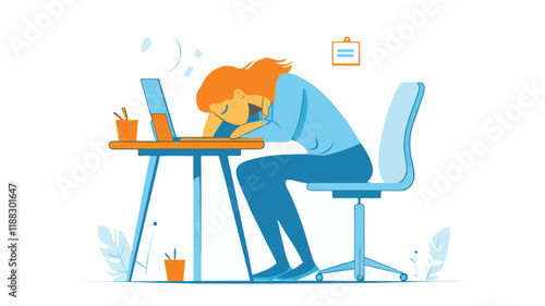Young tired woman office worker character asking for help vector icon isolated on white background.