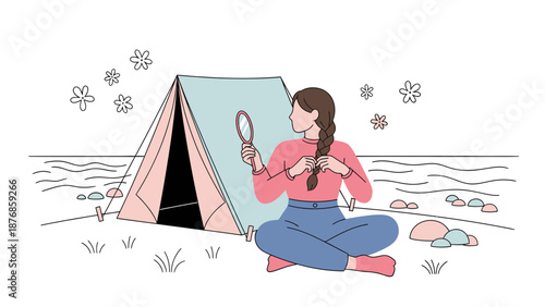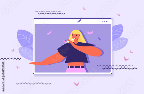 Young woman browsing internet using mobile tablet while lying on bed at home vector icon isolated on white background.