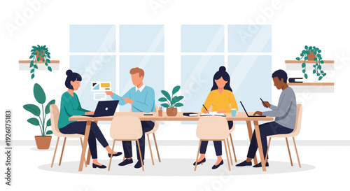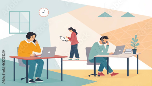 Young woman buying coffee to go in cafe, flat vector illustration. Daily morning routine, everyday life, daily habits.