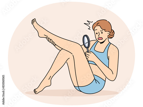 Young woman character in towel and bathrobe bodycare applying cream vector icon isolated on white background.