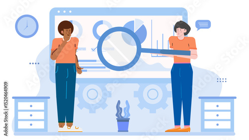 Young woman housemaid, housekeeper, cleaning company worker, housewife holding laundry basket while standing next to washing machine, vector flat illustration. Home cleaning and laundry services.