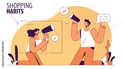 Young brunette woman in red dress choosing modern handbag in front of mirror in fashion boutique, flat vector illustration. Women store, beauty and fashion concept.