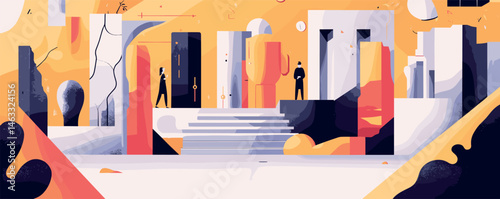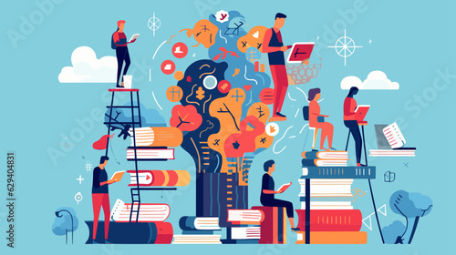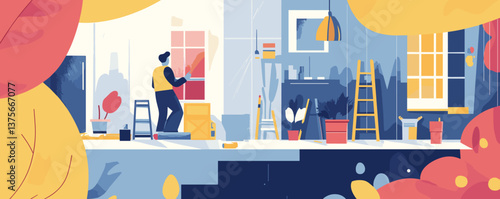 Young woman play with dog at home. Girl reading book in dark room with lamp light. Stay home concept illustration. Vector web site design template. Landing page website illustration.