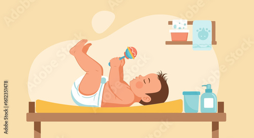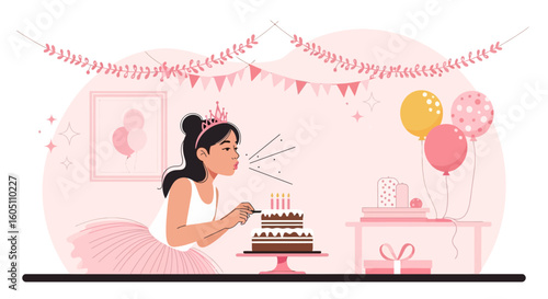Young woman relaxing in bath at home after hard working day vector illustration. Scene of female character lying in bathtub