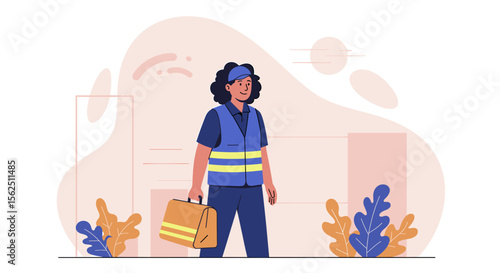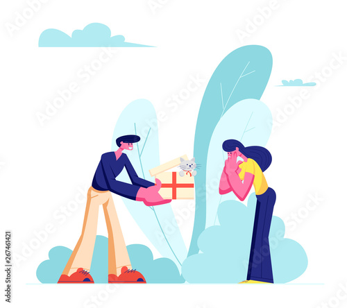 Young woman try eco friendly coat in fashion clothes store. Cruelty free dress concept illustration. Shopping, sale. Vector web site design template. Landing page website illustration.
