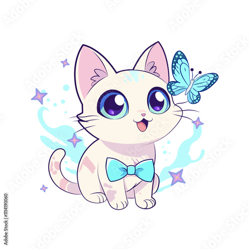Zodiac cat Pisces vector cute horoscope icon. Funny astrology pet calendar cartoon design. Doodle zodiacal kitten animal month symbol sitting on aquarium illustration isolated on white background