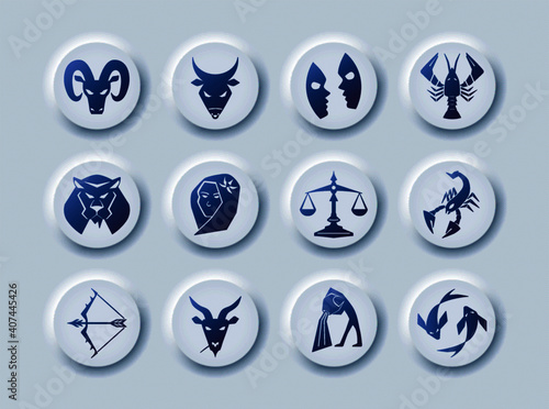 Zodiac signs, horoscope symbols, vector illustration in paper art style. Twelve astrology signs for calendar, diary, card etc. Astrological predictions.