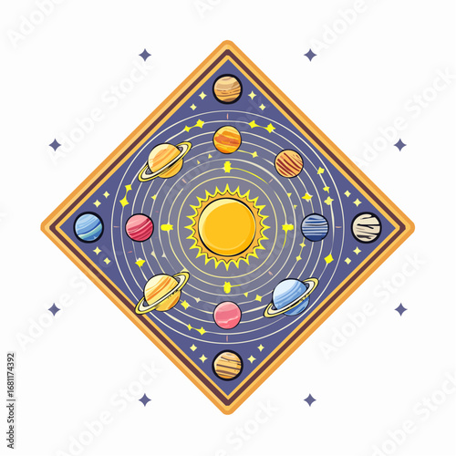 Zodiac wheel with twelve horoscope signs, planets, starry sky, zodiac constellations, vector illustration in paper art style. Astrology poster template.