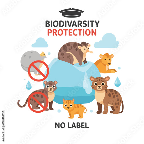Zoo animals vector flat style design illustration. Exotic, woodland, polar animals and signboard with zoo lettering in center.