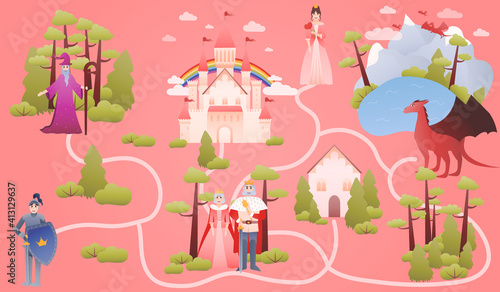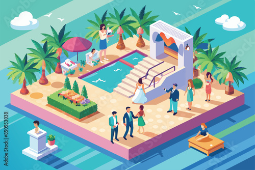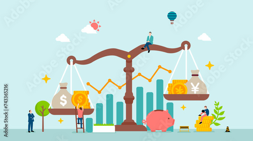 Zoo concept vector illustration. Visitors adults and kids seeing wild exotic animals in cages rhinoceros, giraffe and lion. Peafowls wandering among people. Zoo animals flat style design.