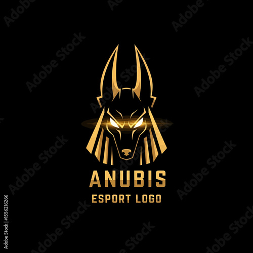 Majestic golden Anubis head logo with fierce expression for esports gaming teams and gaming concepts