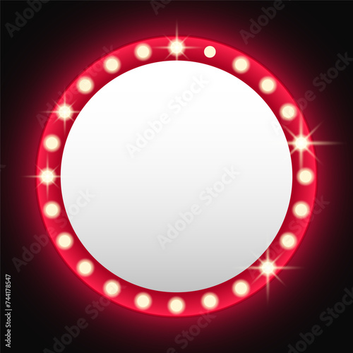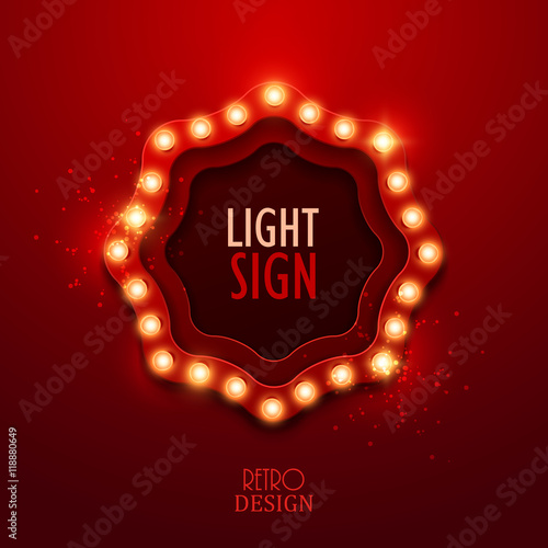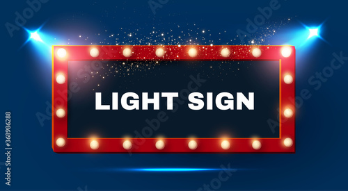 Shining retro light sing. Vintage banner with light bulbs. Cinema, theatre, ad, show and casino design.