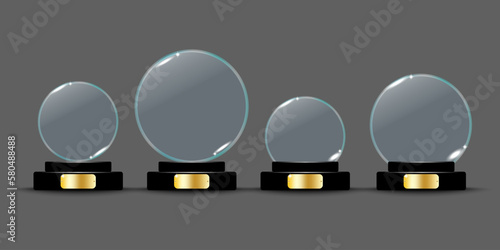 Glass prizes on a stand. Award background. Glass prizes in different shapes. Vector illustration.