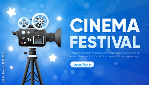 Cinema Festival. Movie time poster. Cinema motion picture. Retro movie projector poster. Vector illustration.