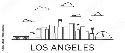 Detailed Los Angeles skyline vector illustration. Los Angeles buildings in line art style, perfect for modern designs. with white background