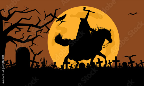 Headless Horseman Happy Halloween . EPS 10 vector.