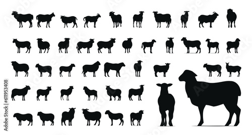 Sheep silhouettes set, large pack of vector silhouette design, isolated white background
