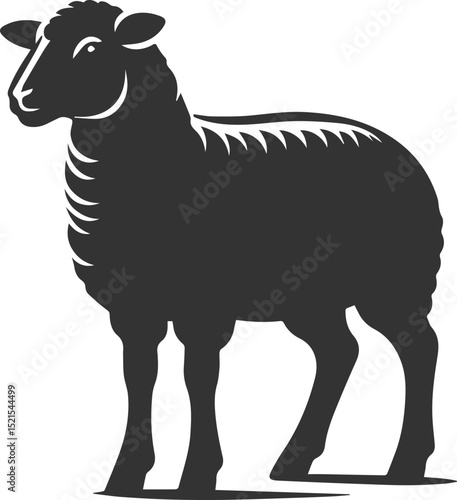 Vector of monochrome sheep illustration, vintage style. Detailed, textured wool, gentle pose. Classic, rustic, design element. Farm animal, pastoral charm.