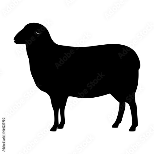 Black silhouette of a sheep standing on a white background farm animal, sheep, silhouette, animal, livestock, farm animal, black, white, isolated, graphic, vector, illustration, mammal, domestic