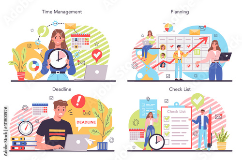 Time management, planning, scheduling, and goal-setting outline icons. productivity, deadline, strategy, and business target vector set for web and mobile. Vector, illustration