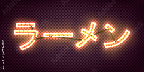 Vector neon sign of Ramen in Japanese isolated on the transparent background.
