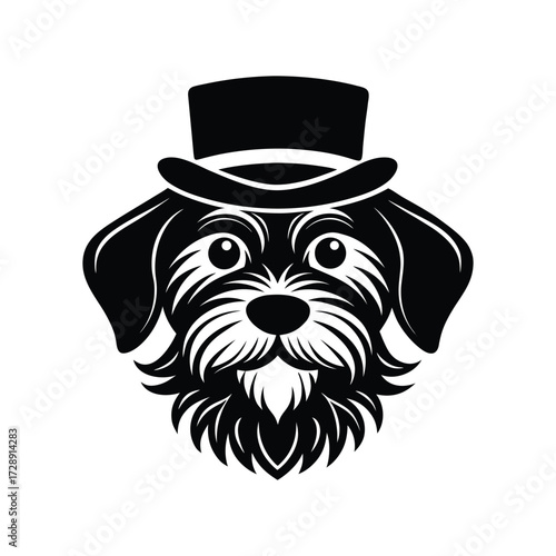 Pet portrait. Handdrawn geometric pattern, poster. Abstract dog head