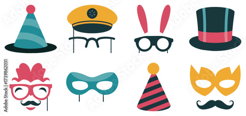 Party Booth Props Crowns, Hats, Glasses, Masks, Tie, Champagne and Animal Ears