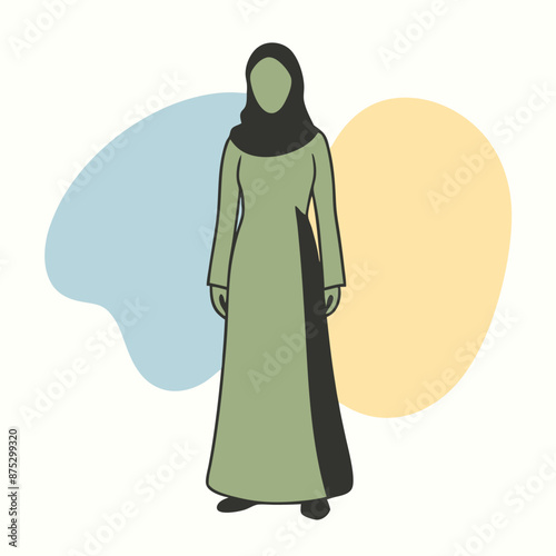 Women Wearing Burqa Silhouette Vector. Islamic Modest Fashion Illustration