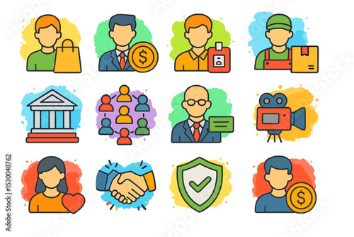 Contact Business icon collection set. Containing office, accounting, teamwork, management, marketing, and more. Editable Stroke Line.