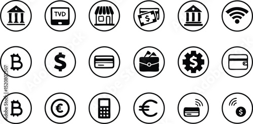 Payment_1982 icon set. Online payment vector icons. ncludes symbols for creditcard, QR code, online shoping, wallet, ATM, blockchan, transfer, bill and more Editable stroke.