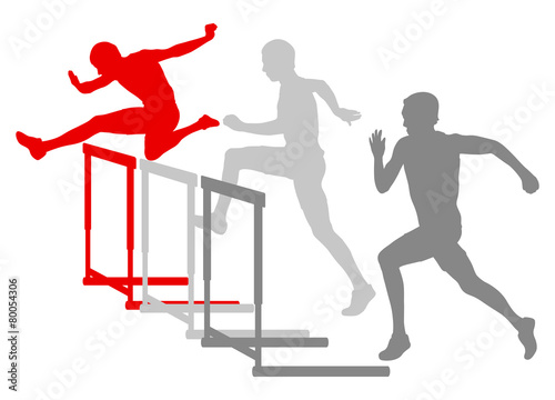 Track and field athlete competing during hurdle race barrier run