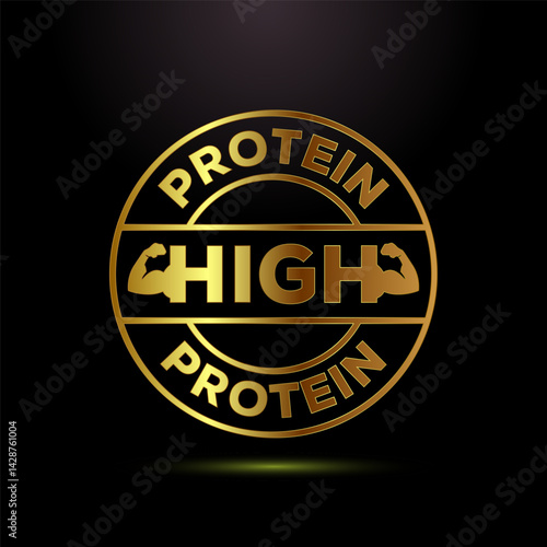 High protein icon, High protein label design, Nutrition healthy eating badge in shadow button design