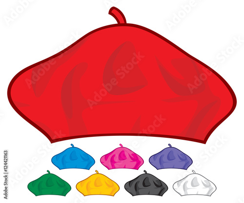 Red beret hat isolated on white background. Vector cartoon close-up illustration.